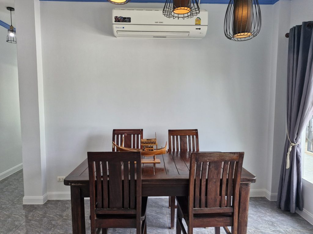 Vous serez loger dans une villa on vous aurez tout le confort voulu avec nos 3 chambres, rangement dans chaque chambre. Les pièces sont également climatisées, vous avez une buanderie avec lave linge, évier et rangement. Un frigo a votre disposition ainsi que grand salon avec TV grand écran.